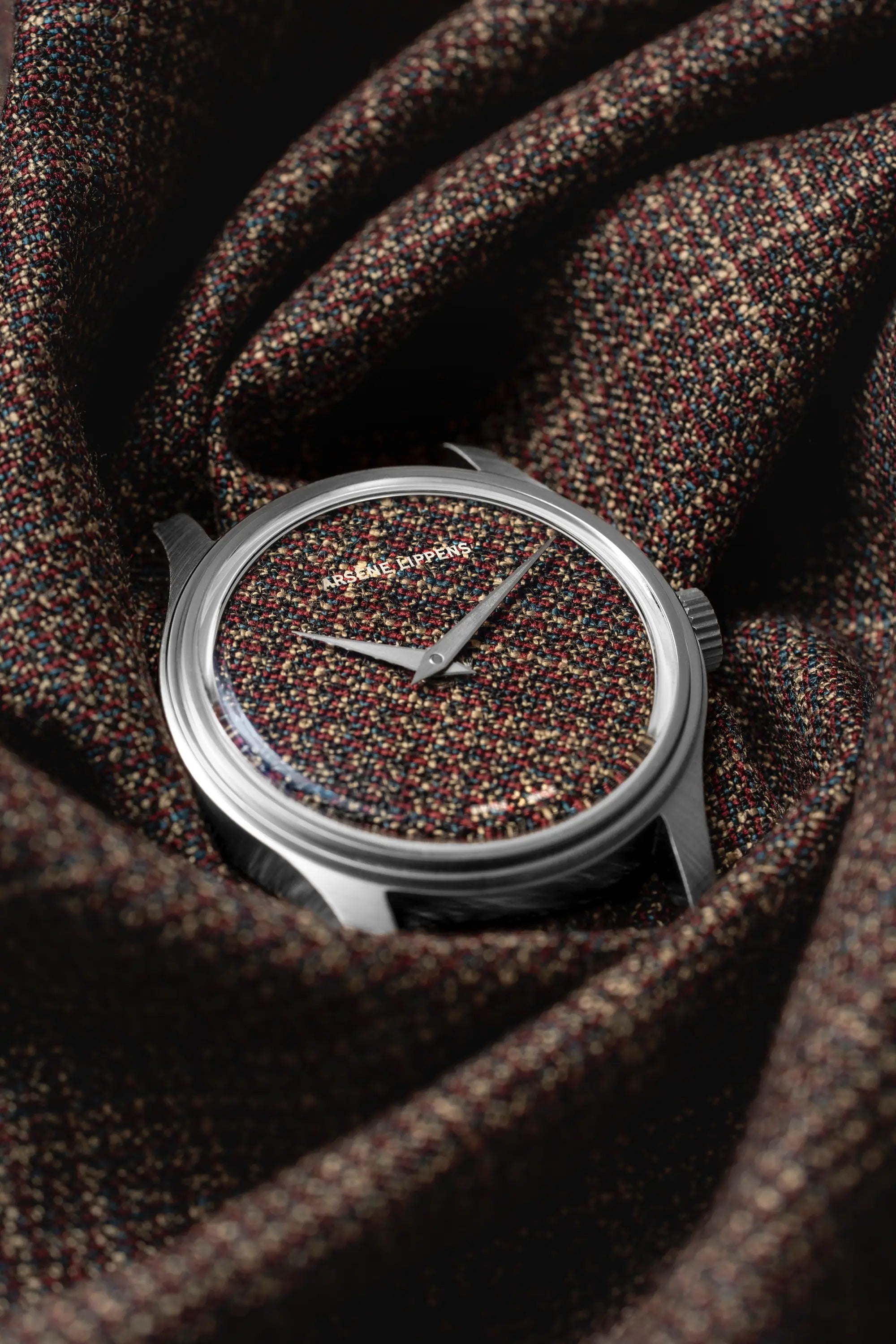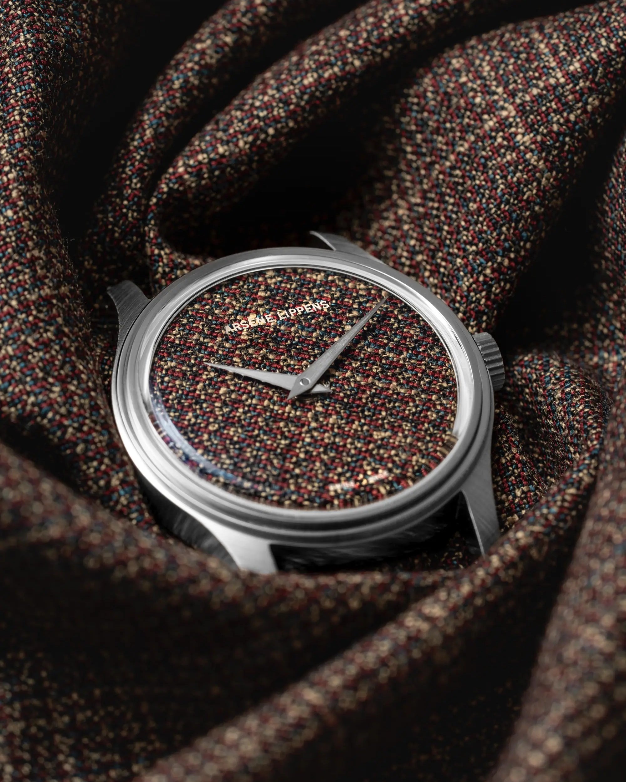 Inspired by the earthy tones of the Chianti hills, the brown textile dial echoes leather and oak.