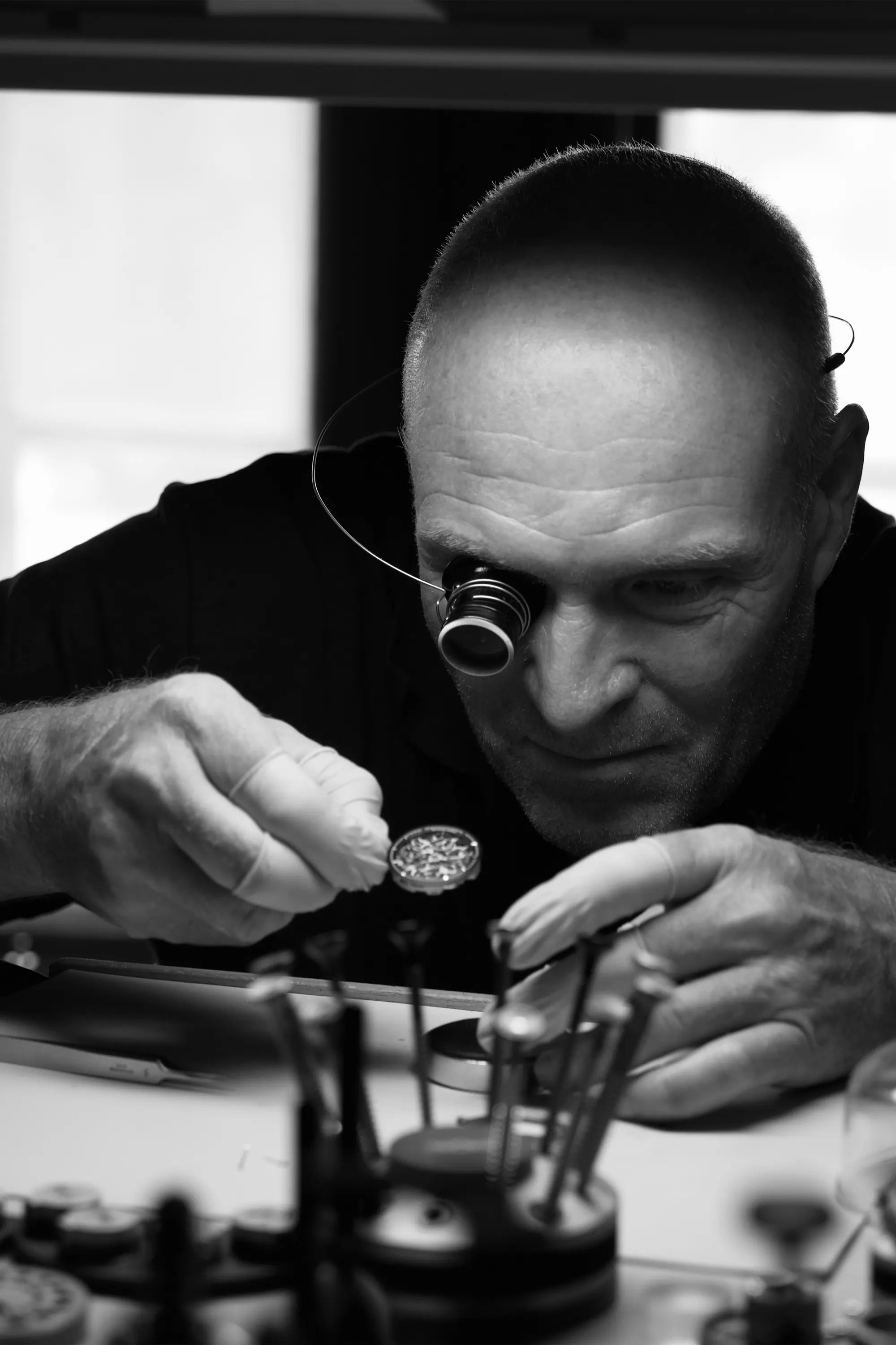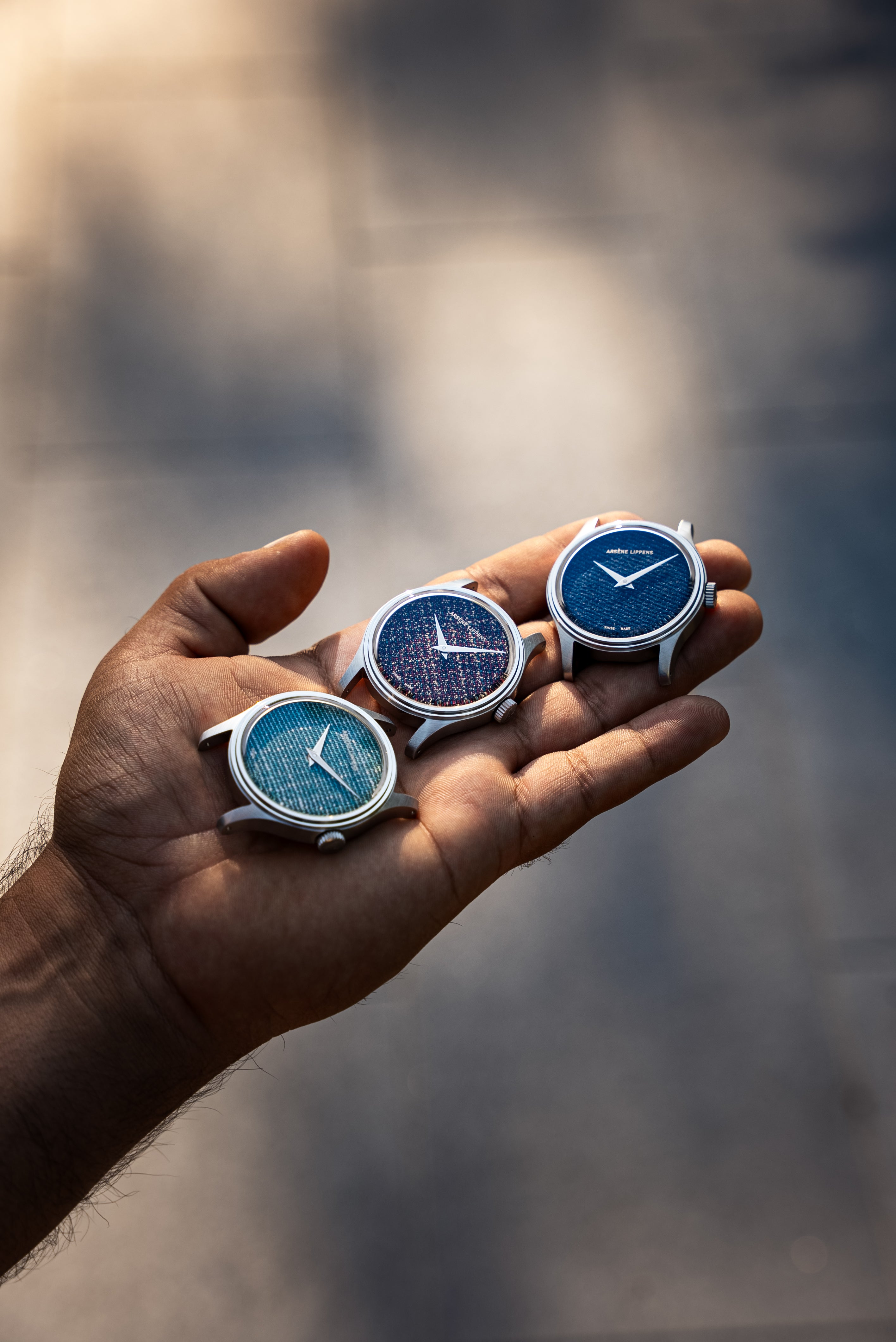 Artigiano, meaning artisan, embodies the union of different worlds of expertise. We collaborated with Italian textile artisans from Lake Como renowned for their fabric traditions, and with Swiss artisans whose mastery in horology brings precision and innovation to every component of the movement and case. The result is a fusion of artistry: where fabric and mechanics become one.