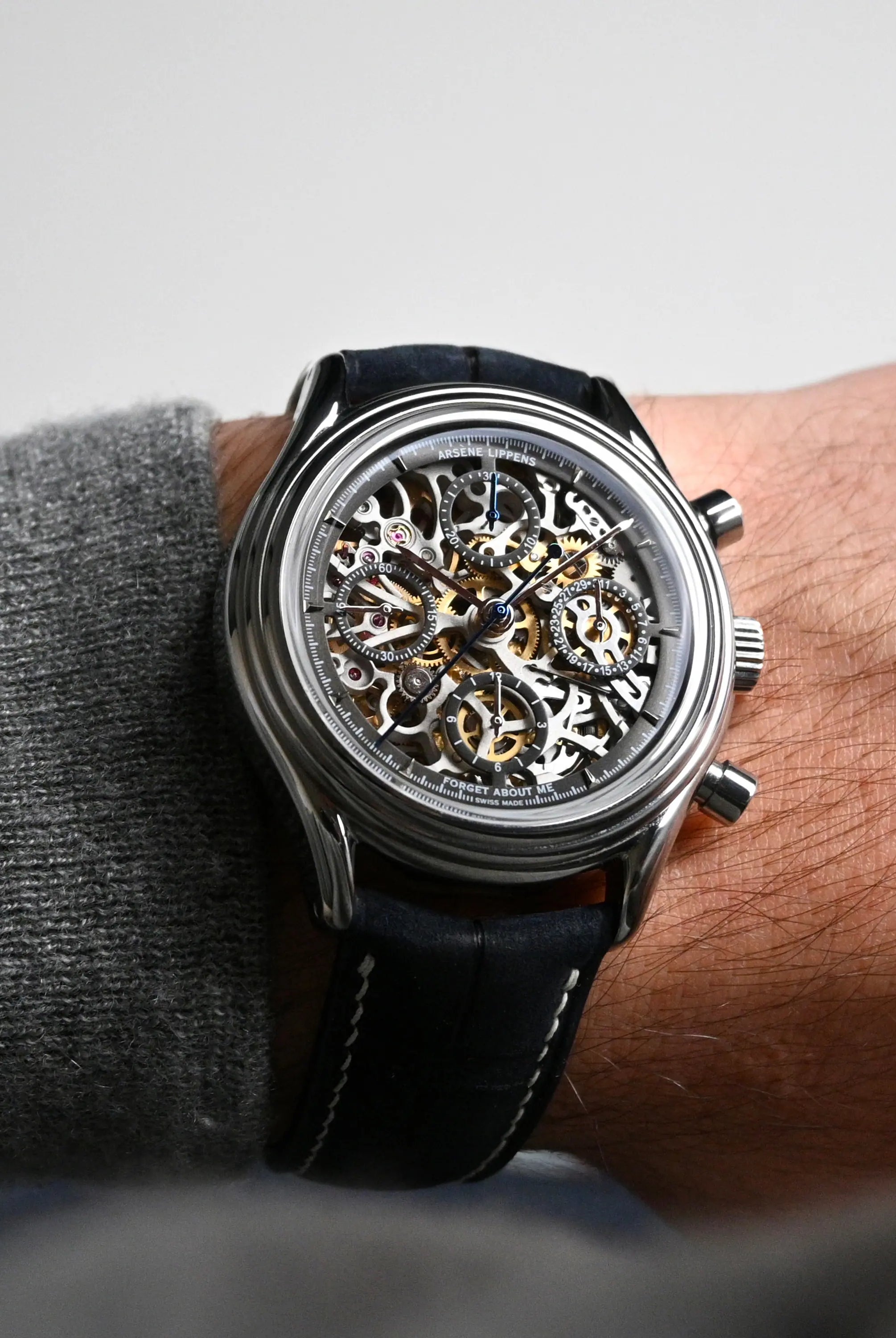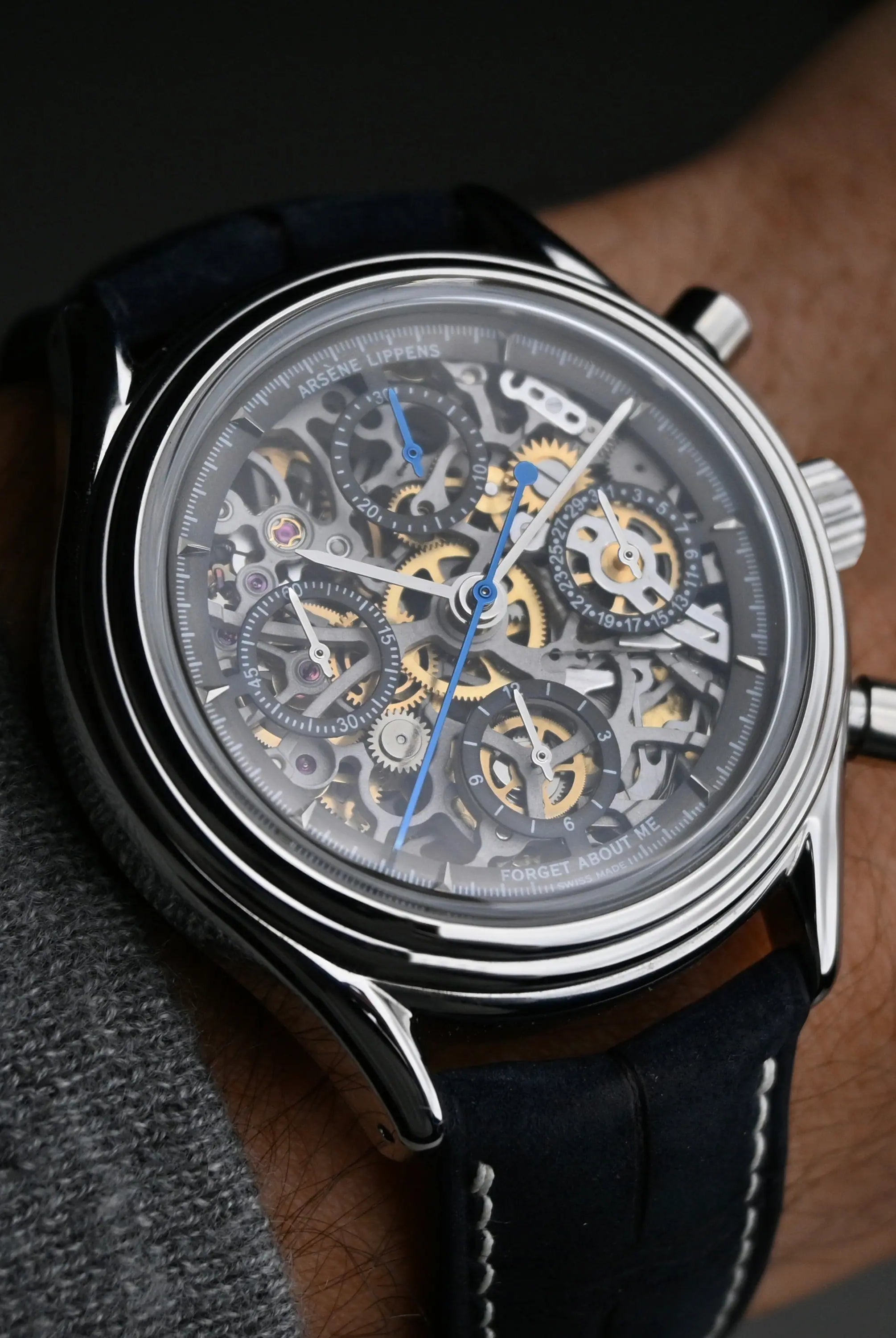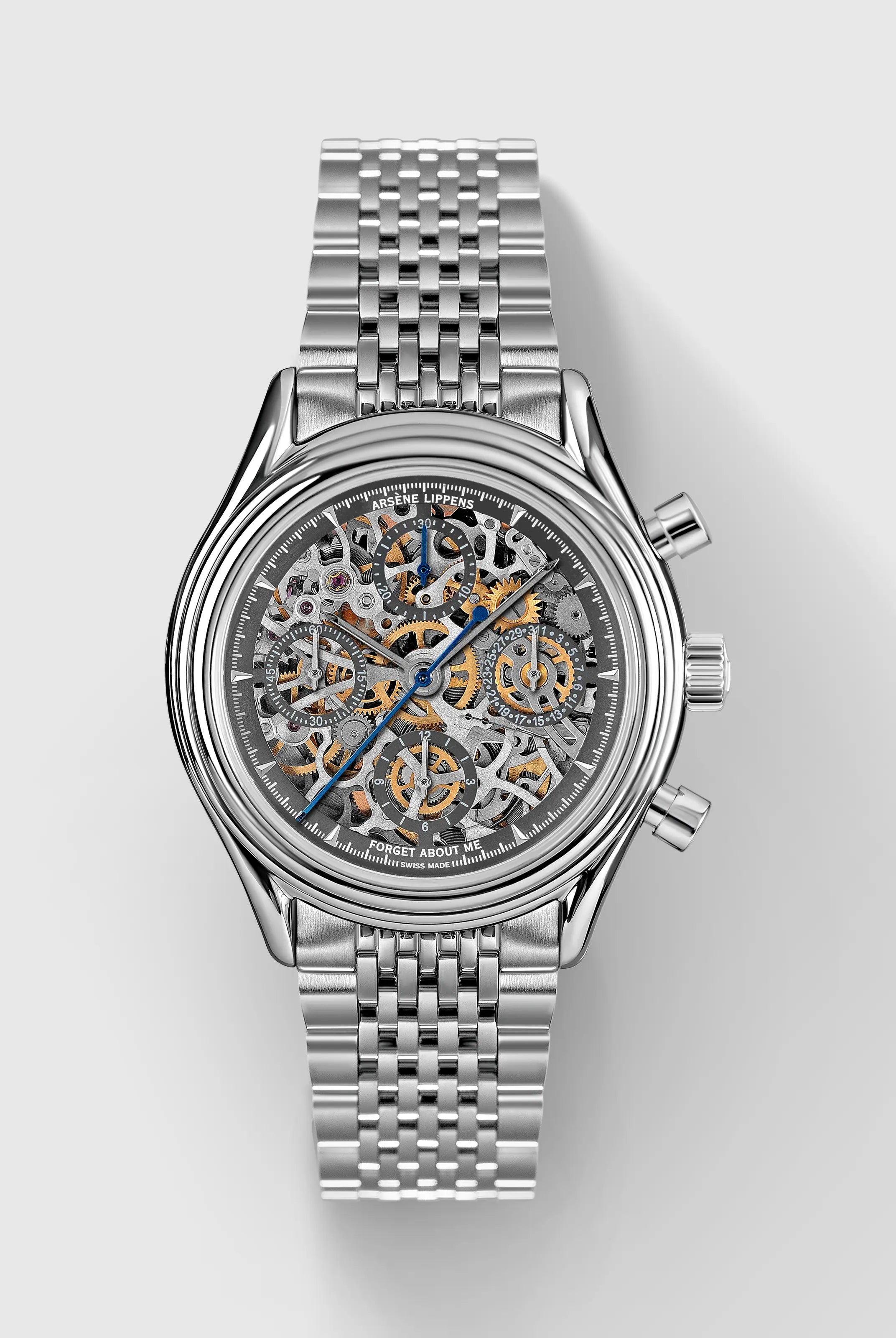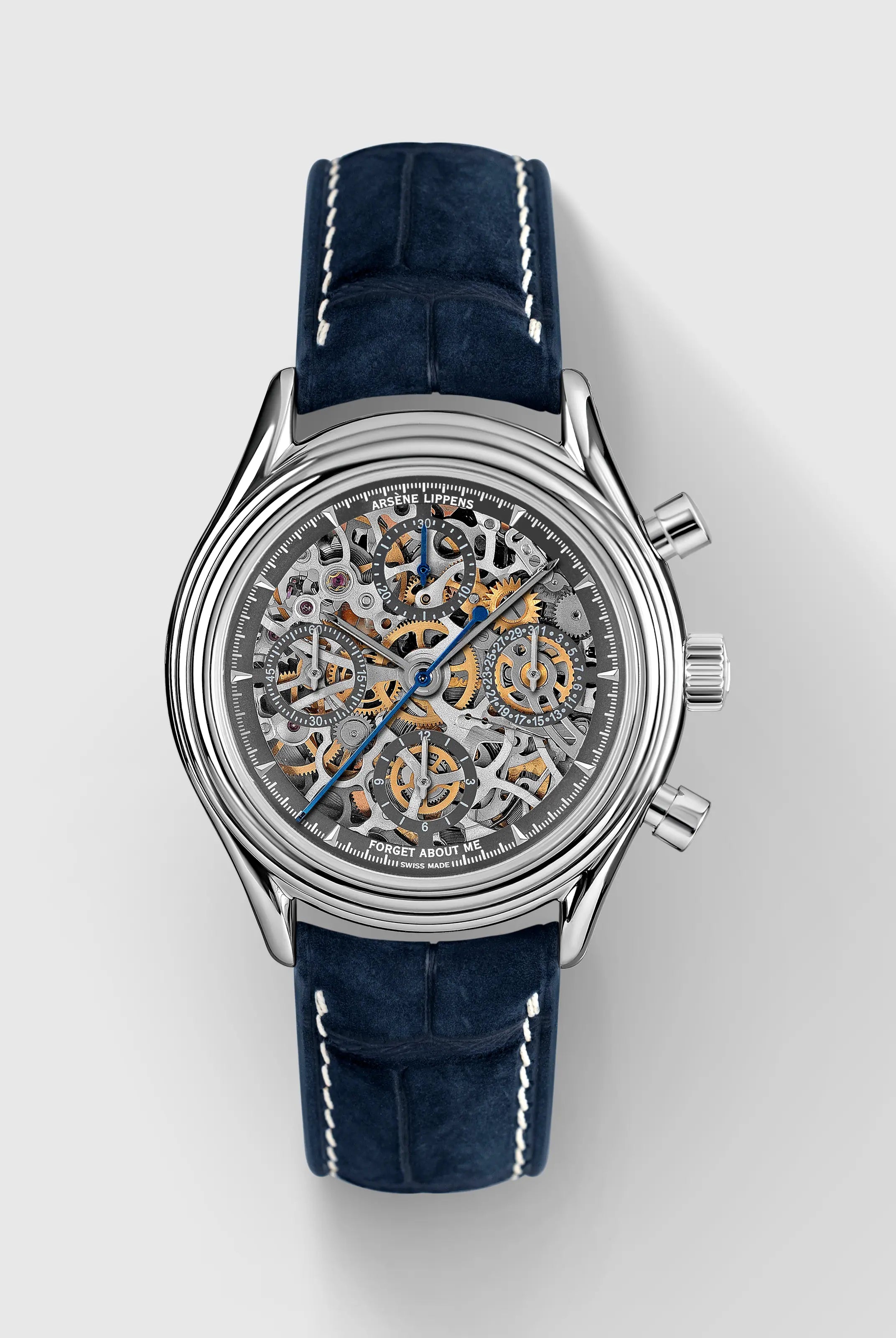 The Scheletrato was created of bringing together vintage and high end streetwear clothing. A Valjoux 7750 skeleton Swiss movement designed and influenced by the 'spider' design of Forget About Me body warmers adopts the street style inspired codes. Keeping a vintage look with the artisanal way of the Swiss watch industry.