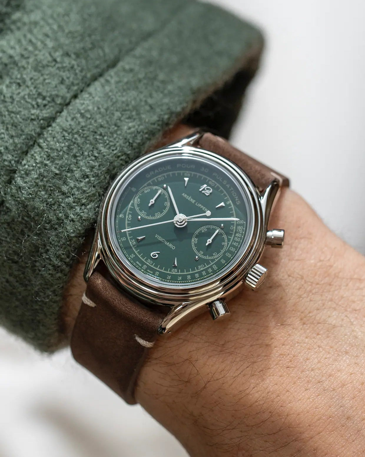 An Arsène Lippens watch on the wrist shows the harmony between case, dial, and strap. The genuine leather we use is chosen for comfort and durability, giving the watch a natural presence on the wrist and completing its character in everyday wear.