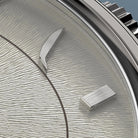 Applied Indices: Brushed index with closed animal eye inspiration at 3 and 9 o'clock