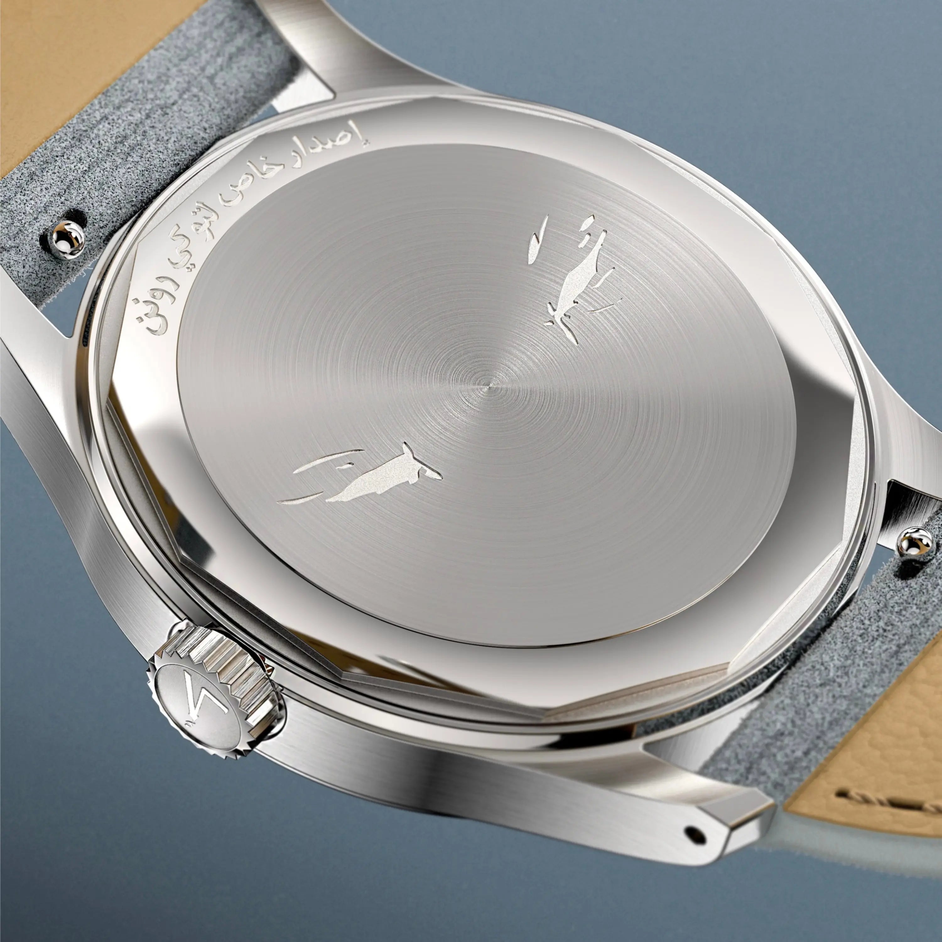 This collaboration led to the creation of a new Artigiano, a strictly limited edition of just 25 pieces worldwide. The watch features three hands and with a dial fully in Arabic with an off-white furry finish, inspired by the rare beauty of albino animals. As with all of Tokei Ronin’s special editions, part of the proceeds will be donated to a charity of his choice, supporting meaningful causes close to his heart.