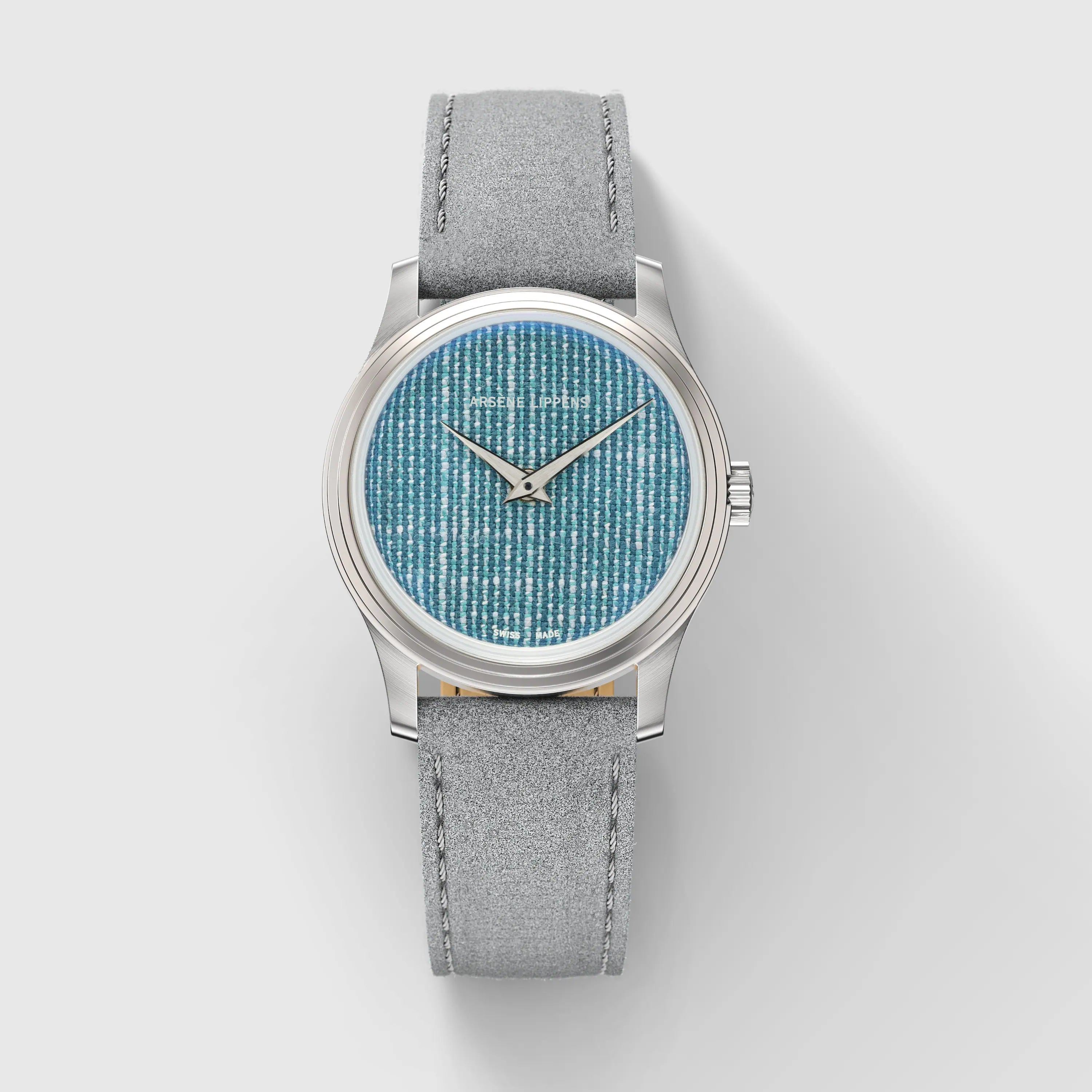 The Arsène Lippens logo is laser-printed on the inside of the glass, giving it a floating effect above the hands and adding a modern dimension to the dial.