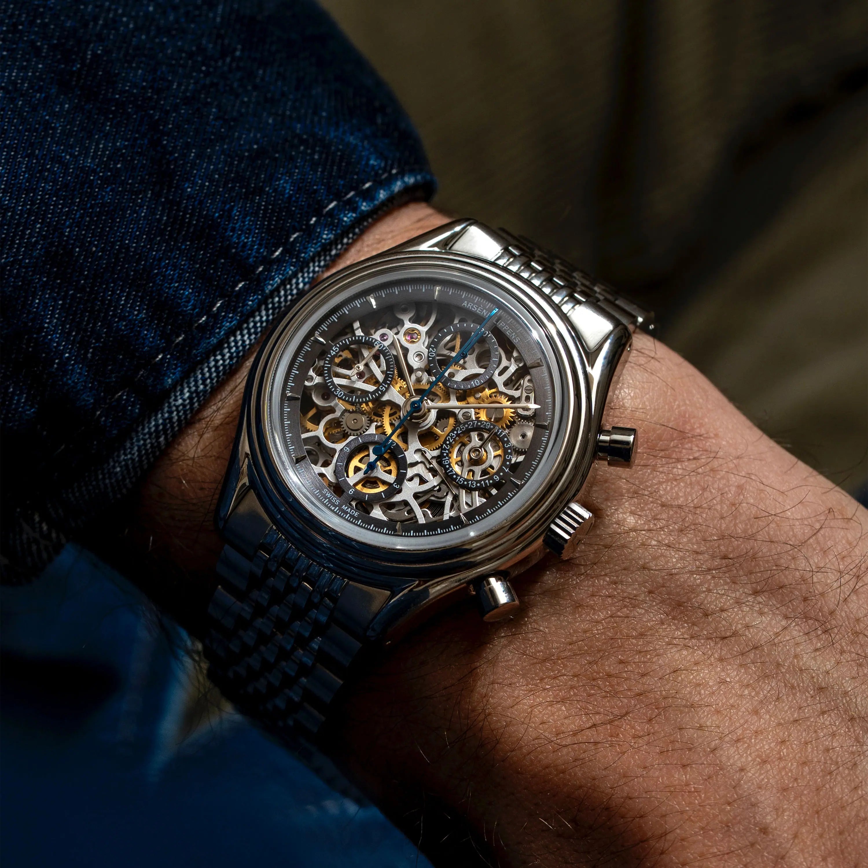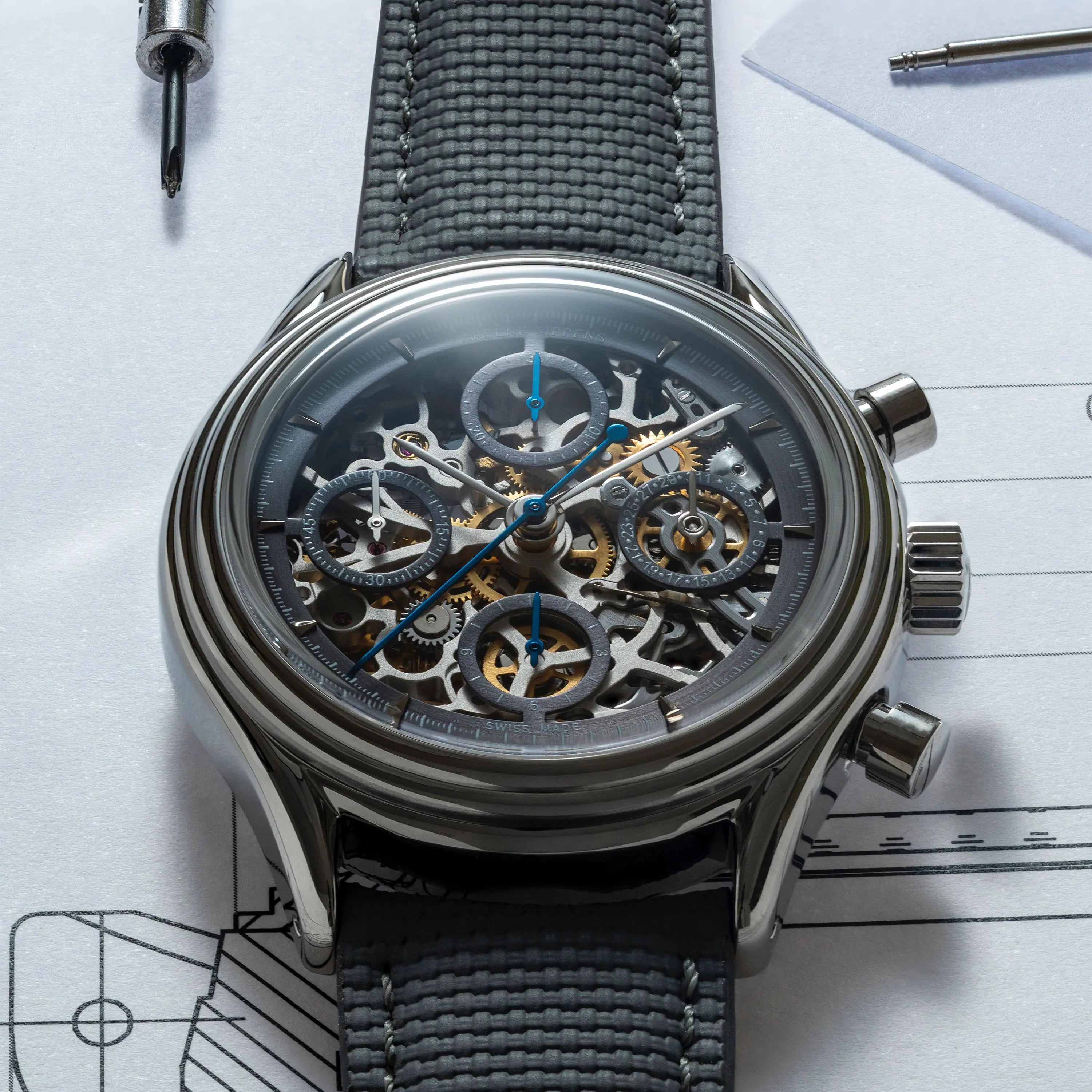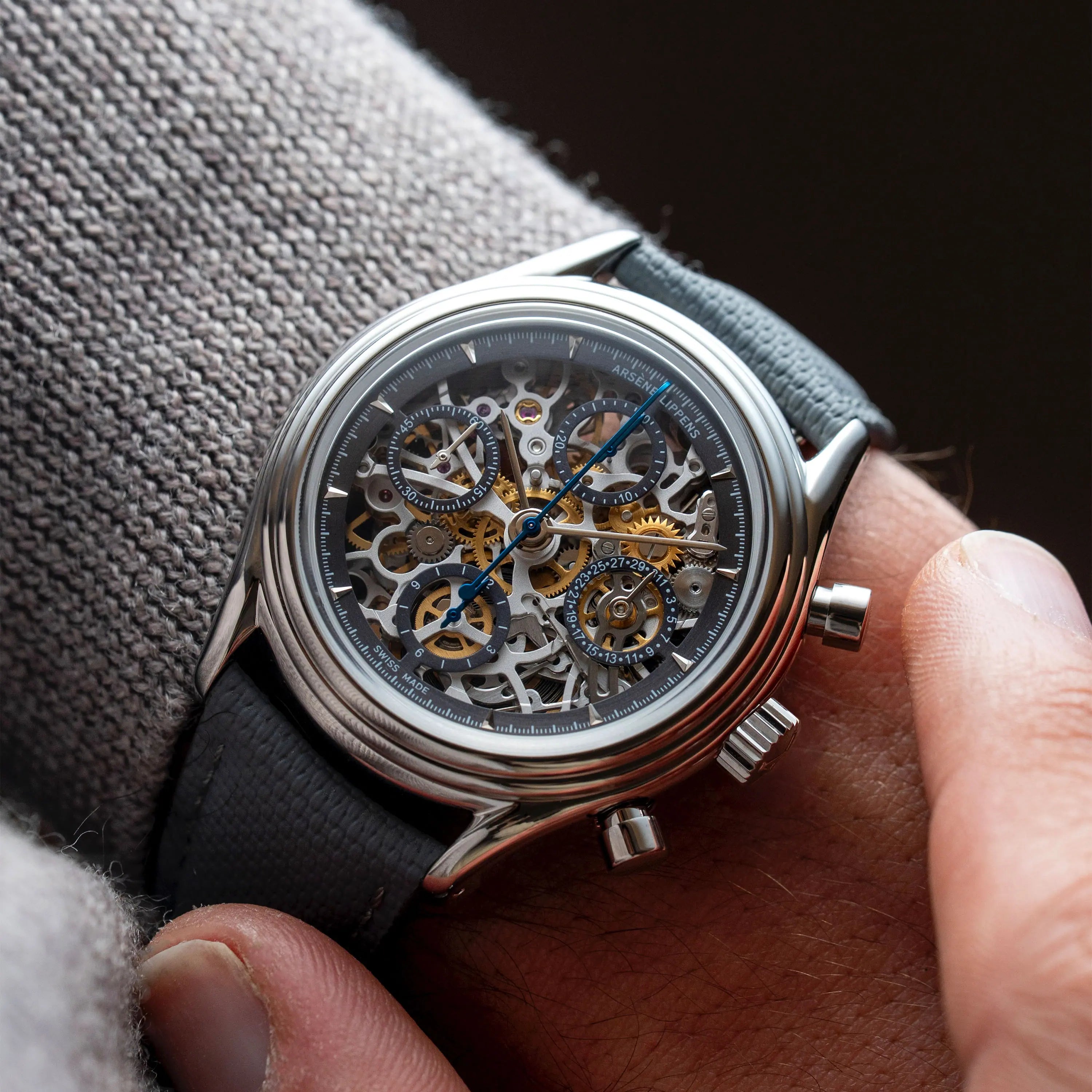 The iconic Valjoux 7750 skeleton is made in Vallée de Joux