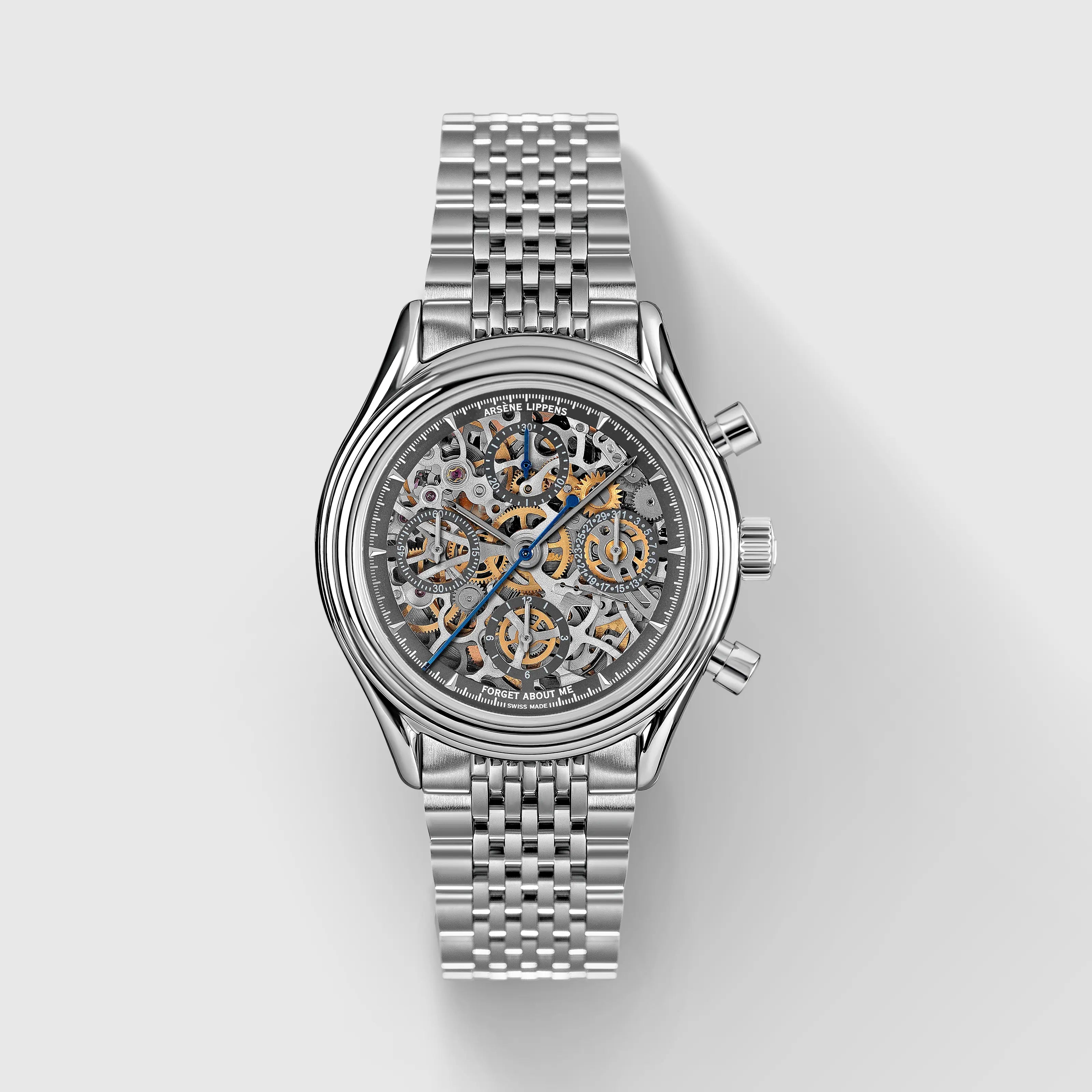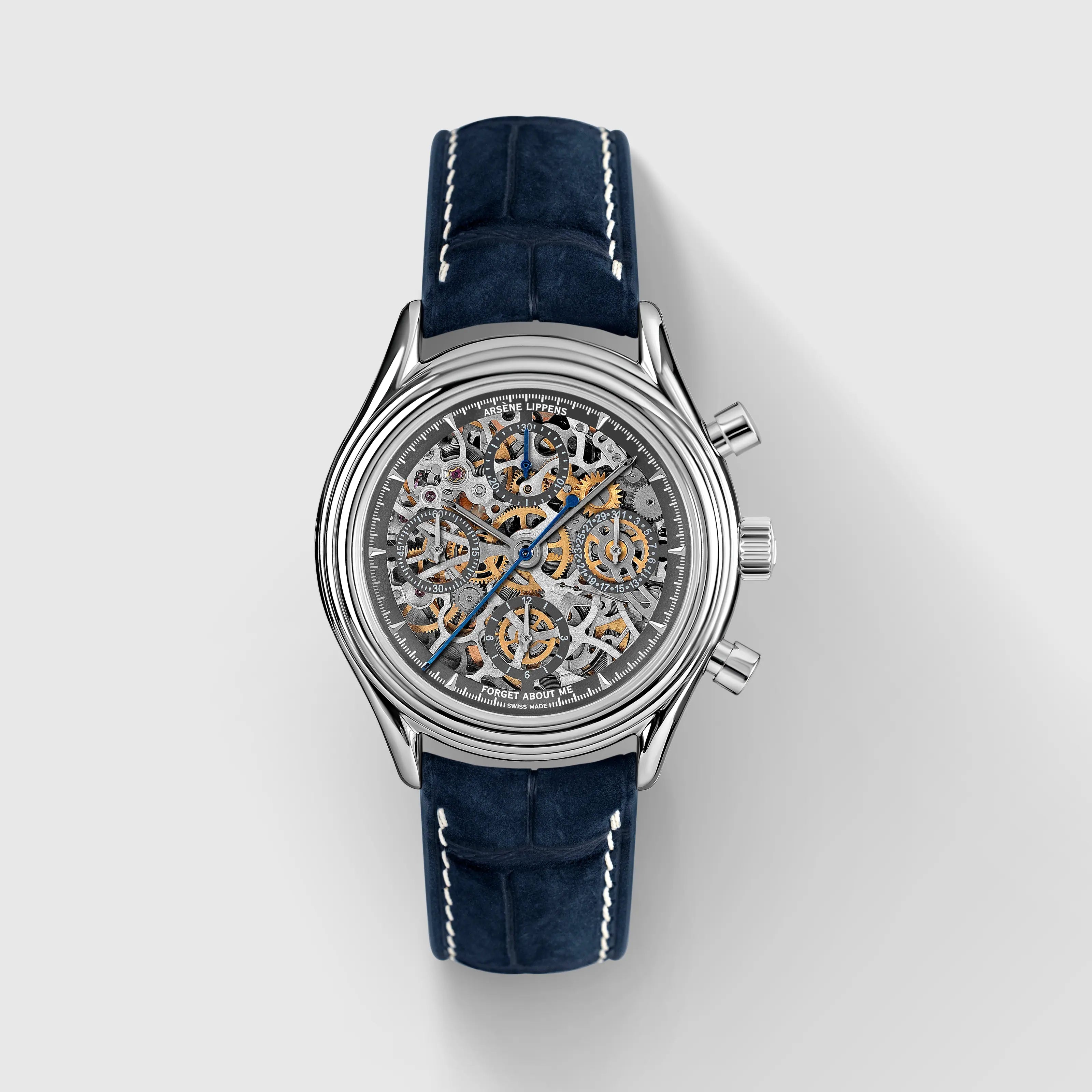 The iron-grey skeleton dial draws inspiration from Forget About Me’s signature “spider” design. Applied indexes and open-worked structure create depth and transparency, allowing the movement to become part of the watch’s identity.